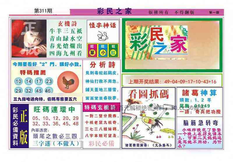 311期:绝杀三肖【猴鸡马】开:蛇37准