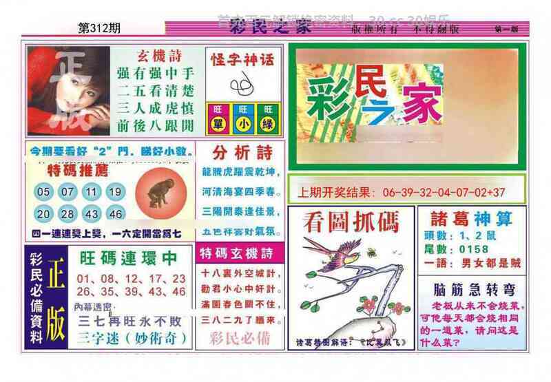 312期:绝杀三肖【鼠兔鸡】开:龙14准